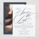 Classy Elegant Navy Blue Calligraphy Foto Back Save The Date
