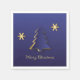 Elegantes Weihnachtsbild mit einem einfachen, sauberen, blauen Weihnachtsbaum mit goldenen Schneeflocken. Dieses Papier Kunstdesign ist modern, festlich, minimalistisch und beruflich.