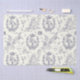 Blauer Jouy Muster mit Pferdportrait mit Lorbeer- und Königskronen, Hufeisen, Reitausrüstung: Sattel und Helm mit verzierter Blumendekoration, für Pferde, Reitsportler und Wettbewerber.