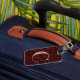 Klassische mit Monogramm Gepäckmarke mit dem Single, erste Monogramm grün auf einem blumengelben Untergrund. Fügen Sie Ihre Kontaktdaten auf der Rückseite hinzu.