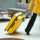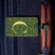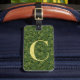 Klassische mit Monogramm Gepäckmarke mit dem Single, erste Monogramm grün auf einem blumengelben Untergrund. Fügen Sie Ihre Kontaktdaten auf der Rückseite hinzu.