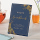 Classy Gold Floral Navy Blue Foto Guestbook Sockelschild