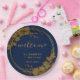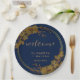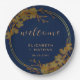 Classy Gold Floral Navy Blue Willkommen Pappteller