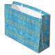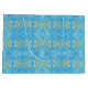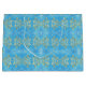 Stilvolle und schicke goldene Geschenktasche mit Blumen. Dieses elegante Design des goldblühenden Set auf blauem Hintergrund wird Ihre Geschenkidee in dieser Urlaubssaison auszeichnen.