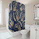 Classy Gold Foliage Botanical Blue Design Duschvorhang