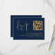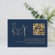 Classy Gold Script Navy Blue QR Code Wedding RSVP Karte