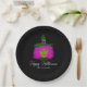 Dekorieren Sie Ihren Tisch mit diesen klassischen Halloween Glam Witch Party Personalisiert Paper Teller. Dieses moderne, elegante Design hat eine hübsche Hexe und wurde aus Kunstwerken geschaffen. Sie hat lila rosa Haare, ein grünes Gesicht und große Augen. Der Text ist "Happy Halloween" in weißem, trendigem, handgeschriebenem Script-Schriftart. Personalisiert mit dem Namen oder Ihrer eigenen benutzerdefinierten Nachricht. KLICKEN SIE AUF DIE OPTION VORLAGE PERSONALISIEREN, UND FOLGEN SIE DEM PROMPT.