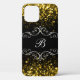 Klassische Ladys Monogramm Smartphone Gehäuse mit Namen Initial können Sie personalisieren Online-und Goldton Glitzer-Flecken im Hintergrund in einem eleganten Design für Damen oder Mädchen.
