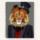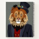 Dieses Design zeigt das Portrait eines Löwen in einem Anzug und Hut eines Mannes.