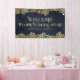 Ein bezauberndes marineblaudes Hochzeitsbanner, das exquisit mit eleganten Typografien und goldenen Wirbel geschmückt ist. Personalisieren Sie es mit Ihrem ausgewählten Text für eine wirklich raffinierte Touch.