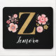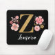 Ein wunderschönes, mit Monogramm rosa Blumenmousepad mit rosa Blume und einem Imitat mit goldenem monogramm Buchstaben Z auf schwarzem Hintergrund. Personalisieren Sie das Mauspad, indem Sie unter dem Monogramm Ihren Namen hinzufügen. Macht ein lustiges Geschenk für einen Freund oder für eine Brautjungfrau. Entworfen für Sie von BlackBerry Boulevard.