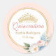 Classy Pink Blue Floral Quinceanera Runder Aufkleber