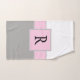 Dieses Set ist in rosa, weiß und grau gehalten und mit Waschlappen, Handtuch und Badehandtuch ausgestattet. Jedes Element verfügt über eine Vorlage, in der Sie Ihr Monogramm zunächst einfügen können, um Ihre persönlichen Bedürfnisse zu Anzug. Sie können die Hintergrundfarben leicht anpassen, indem Sie aus verschiedenen Farbtönen wählen.