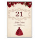 Classy Quinceanera Red Roses Floral Burgundy Tischnummer