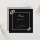 Stilvolle, elegante moderne Hochzeit rsvp in Silber und Schwarz Farben. Mit einem schicken silbernen Glitzer-Rahmen, der Ihre Veranstaltungsdetails umschließt, auf schwarzem Hintergrund, mit Eckverzierungen funkelnd Diamant-Hochzeitsringe. Der gesamte Text ist vollständig an Ihre Bedürfnisse angepasst. Wenn Sie helfen möchten, Ihr Produkt anzupassen oder passende Produkte möchten, kontaktieren Sie mich bitte über meinen Shop und ich werde Ihnen gerne weiterhelfen.