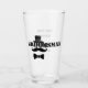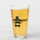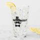 Trauzeuge-Glas mit Oberhut und Schnurrbart-Motiv und Schablonenschrift. Ideal für Junggesellenabende und Hochzeitsfeiern. Personalisiert mit Namen und Datum auf der Rückseite.