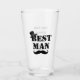 Trauzeuge-Glas mit Oberhut und Schnurrbart-Motiv und Schablonenschrift. Ideal für Junggesellenabende und Hochzeitsfeiern. Personalisiert mit Namen und Datum auf der Rückseite.