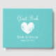 Klassisches türkisfarbenes Gästebuch für Hochzeitsfeiern in Box. Elegante Designvorlage mit Skripttypografie und Vintagem Herzsymbol. Teil des budgetfreundlichen Set für die Sammlung. Ändern Sie die Hintergrundfarbe in eine beliebige Farbe. Schönes Accessoire für Ehepaare, die heiraten.