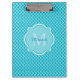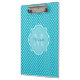 Classy Turquoise Blue Quatrefolie Monogramm und Na Klemmbrett