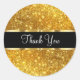 Classy glitzernden Dankeschön an Aufkleber mit goldfarbenen digital bedruckten Imitaten funkelndes Glitzer, das das Aussehen des echten Glitzer nachahmen soll und danke Ihnen Text in einem eleganten Skriptstil, den Sie online personalisieren können. Wir bedanken uns bei Ihren Kunden, Veranstaltungsteilnehmern oder nutzen diese als Dankeschön an Ihre Umschlag Aufkleber.