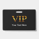 Klassische VIP Besucher-, Gast- oder Event-Abzeichen in Schwarz mit coolem VIP-Text als goldene Grafik zusammen mit zusätzlichem Text, den Sie online anpassen können. Für Firmen, Firmen oder spezielle Events oder Clubs geschaffen.