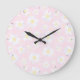 Classy White Daisy Blume Botanisches Pink Design Große Wanduhr