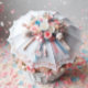 CLASSY WHITE SHOWER UMBRELLA BLUME, BABY RATTLE EINLADUNG