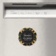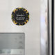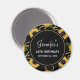 Geburtstagsmmagnet mit elegantem und stilvollem Muster. Hübsche gelbe Sonnenblumen und grüne Blätter umgeben von zarten Goldketten. Schwarzer Hintergrund.
