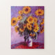 Ein schönes klassisches Stillleben-Puzzle mit Sonnenblumen in einer Vase, gemalt vom französischen Impressionisten Claude Monet.