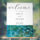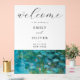 Elegantes, modernes Akrylheiratsschild mit Claude Monet Water Lilies Malerei.
