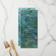 Modernes Hochzeitsmenü mit minimalistischer Monogramm-Typografie und Claude Monet Water Lilies Malhintergrund.