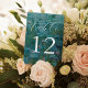 Hochzeitliche Tischnummern mit Claude Monet Water Lilies Malerei Hintergrund.