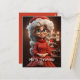 Niedlich Mrs. Claus mit Brille in einem rot gestrickten Kleid. Frohe Weihnachten!