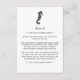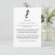 Diese Detailkarten sind perfekt für jedes Paar, das eine elegante Hochzeit am Strand plant. Das Design zeichnet sich durch ein einzigartiges Seepferd aus Lehm und eine Tonplatte auf der Kartenrückseite aus. Das schlichte und frische Design kann personalisiert sein, um Ihre besondere Veranstaltung zu Anzug und wird die perfekte Beilage für jedes Beach-Party, einschließlich Brautparty, Verlobungen, Polterabende, Geburtstagspartys und vieles mehr.