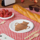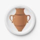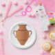 Eine braune Tonvase mit Griffen. Dieses Design wirkt auf diese Paper-Teller sehr effektiv