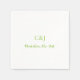Elegante Hochzeitsnapkins mit einem minimalen und sauberen Layout mit Ihrem Monogramm und Ort Ihrer Hochzeit.