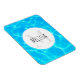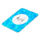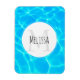 Monogramm Magnet mit einem Foto von klarem blauem Wasser des Beckens, mit schimmernden Reflexionen. Ein weißer Kreis lag oben mit Ihrem Namen und dem ersten drinnen.