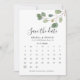 Der botanische Save the Date ist im Grünen und eignet sich ideal für eine Hochzeit im rustikalen Stil. Das Design umfasst Aquarellgrün Eukalyptus-Blätter.