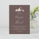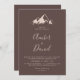 Diese klare Berghütte und die erste Hochzeitseinladung ist perfekt für eine klassische Hochzeit. Das Design besticht durch einen idyllischen, beigefarbenen Berg in Aquarelltönen.