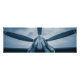 Nahaufnahme der Propeller des kleinen Kolbenflugzeugs vor dem Hintergrund eines dunklen Wolkenkratzes. Klare Requisite! Los geht's! Aviate, navigieren, kommunizieren!