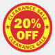 Clearance Verkauf 20% Rabatt auf den Einzelhandel Aufkleber.