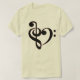 Clef-Herz-Shirt kennzeichnet einen Bassschlüssel und einen dreifachen Clef, die ein Herz bildet, das im Rot umrissen wird.