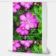 Vibrierende Magenta clematis Blume blühen vor einem Hintergrund grüner Blätter, durchsetzt von einem religiösen Zitat der Römer 5:3-5 in aufwändiger Schrift. Die leuchtenden Blütenblätter der Blume zeichnete das Auge, während die kontrastierende Vegetation die faszinierenden Details der Blüten und den sorgfältig platzierten Text hervorhebt. Das war eine wunderschöne, blühende Clematis-Rebsorte bei einem Freundeshaus im Juni 2013. Die Schrift stammt aus einer Nelson KJV Bibel von 1913, die einst meinem großen Onkel John gehörte.