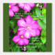 Vibrierende Magenta clematis Blume blühen vor einem Hintergrund grüner Blätter, durchsetzt von einem religiösen Zitat der Römer 5:3-5 in aufwändiger Schrift. Die leuchtenden Blütenblätter der Blume zeichnete das Auge, während die kontrastierende Vegetation die faszinierenden Details der Blüten und den sorgfältig platzierten Text hervorhebt. Das war eine wunderschöne, blühende Clematis-Rebsorte bei einem Freundeshaus im Juni 2013. Die Schrift stammt aus einer Nelson KJV Bibel von 1913, die einst meinem großen Onkel John gehörte.