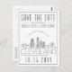 Eine einmalige Hochzeit rette - die aktuelle Postkarte für eine Hochzeit in der wunderschönen Stadt Cleveland, Ohio. Diese Einladung enthält eine stilisierte Abbildung der einzigartigen Skyline der Stadt mit ihrem Namen darunter. Anschließend erhalten Sie Informationen zu Ihrem Hochzeitstag in einem passenden, offenen Stil. Auf der Rückseite der Post ist Ihre Adresse Informationen. Alle Einzelelemente der Einladungskarte sind freigeschaltet. Sie können also alle notwendigen Details wie Schriftart-Größen, Stile und mehr über die Anpassungsfunktion ändern. Sie können der Rückseite ein Foto hinzufügen und einen Schwarz-Weiß-Filter hinzufügen. Viel Spaß beim kreativen sein und es zu Ihrem eigenen machen!
