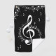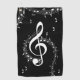 G Clef unter den weißen Noten der Musik auf schwarz. Der schwarze Hintergrund macht die hellen weißen Noten Pop.