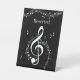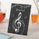 G Clef unter den weißen Noten der Musik auf schwarz. Der schwarze Hintergrund macht die hellen weißen Noten Pop.
