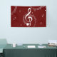 G Clef unter Noten von Musik auf einem tiefen Rot. Der dunkelrote Hintergrund macht die hellen weißen Noten zum Pop. Design von Weiß- und Maronmusik,