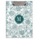 Stilvolle und niedliche Aquamarine und weiße Floral Monogram Zwischenablage. Ideal für Mütter, Lehrer, Hochzeitsplaner und vieles mehr.