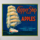 Clipper Ship Apple Label (grün) - Cashmere, WA Poster